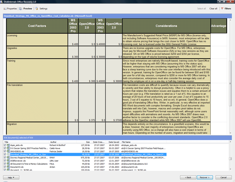 Recover latest versions of deleted documents even after a hard drive failure. Unlike general-use undelete and data recovery tools, DiskInternals Office Recovery benefits from being designed to handle documents stored in Microsoft Office format.