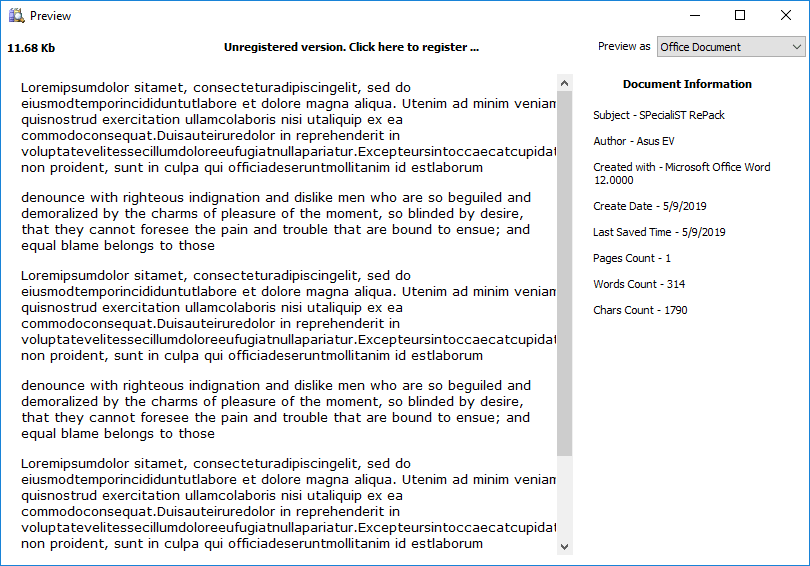 With full document preview in the free evaluation version, there are no worries or surprises in buying DiskInternals Office Recovery.