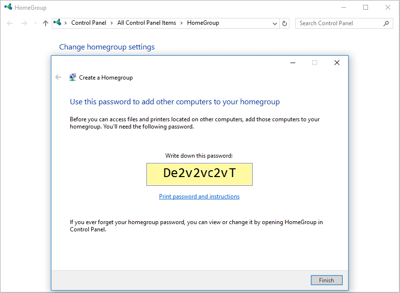 Follow the wizard until a window with a password appears; print it out or copy it onto paper, then click on the Finish button. Do the same on another computer.